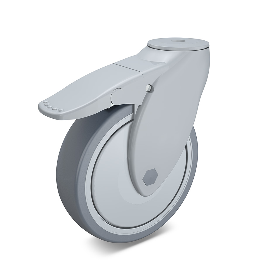 Bestellcode : 08L JPC 125 P04 Plattengröße in mm : 77 x 67 Schraubloch Abstand in mm : 61,5 / 56,0 x 51,5 / 46,5 Schraubloch ø in mm : 8,50 Ausladung Rolle in mm : 46,00 Temperaturbereich C° min / max : -20° / +60° Laufflächenhärte : Shore A 87 Störkreisradius in mm : 109,00 |